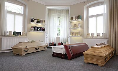 - Angemessene Räumlichkeiten und ein breites Sortiment von Trauerwaren