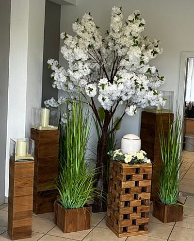 - Angemessene Räumlichkeiten und ein breites Sortiment von Trauerwaren