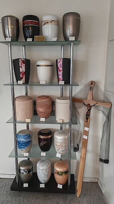 - Angemessene Räumlichkeiten und ein breites Sortiment von Trauerwaren