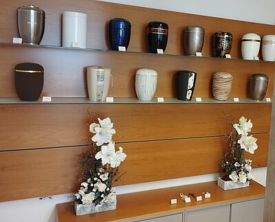 - Angemessene Räumlichkeiten und ein breites Sortiment von Trauerwaren
