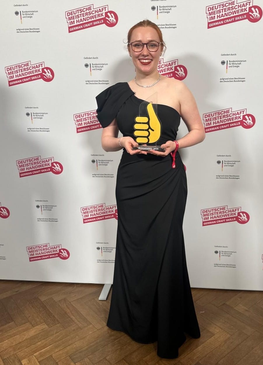 Frankfurt am Main, Freitag, 05.12.2025 – Bei der Schlussveranstaltung der Deutschen Meisterschaft im Handwerk "German Craft Skills" wurde die herausragende Leistung der Schleswig-Holsteiner Bestattungsfachkraft Mona May Hansen feierlich gewürdigt. Sie setzte sich in diesem Jahr erfolgreich gegen die bundesweite Konkurrenz durch und gewann den Bundeswettbewerb im Beruf Bestattungsfachkraft.