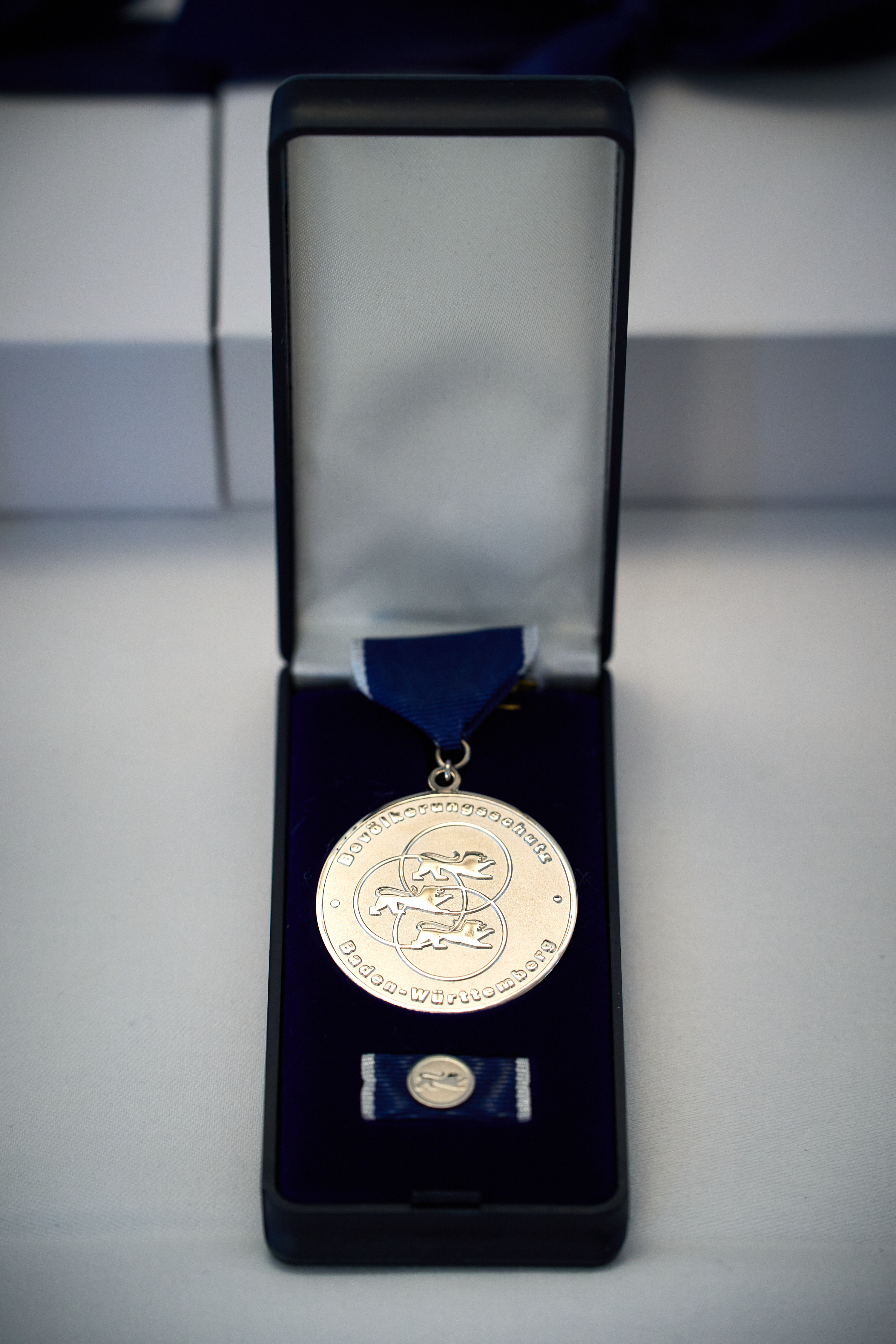 Die feierliche Verleihung fand im Neuen Schloss in Stuttgart statt. Überreicht wurde die Auszeichnung durch den stellvertretenden Ministerpräsidenten und Innenminister des Landes Baden-Württemberg, Thomas Strobl. Die Ehrung wird in Form einer Medaille und einer Anstecknadel mit dazugehöriger Urkunde an Personen verliehen, die sich in besonderem Maße um den Bevölkerungsschutz verdient gemacht oder im Einsatz außergewöhnlichen Mut sowie entschlossenes Handeln bewiesen haben. Die jährlich vergebene Auszeichnung ist auf eine Zahl von 20 pro Jahr limitiert.