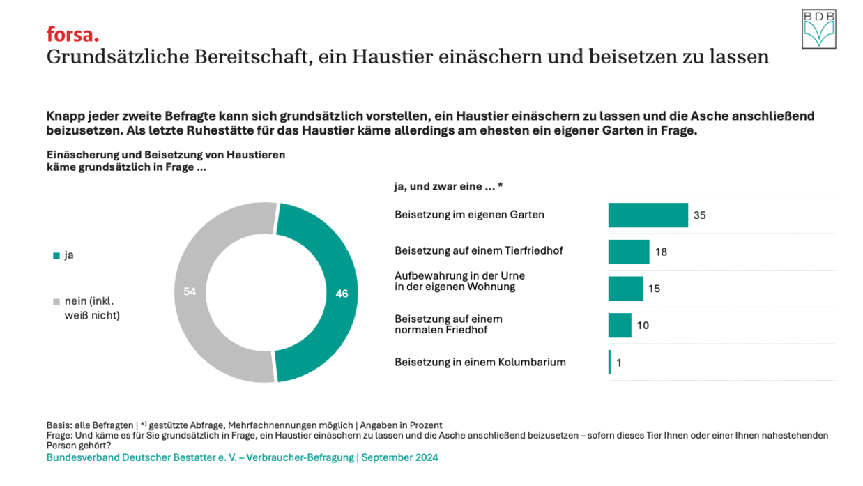 Und käme es für Sie grundsätzlich in Frage, ein Haustier einäschern zu lassen und die Asche anschließend beizusetzen – sofern dieses Tier Ihnen oder einer Ihnen nahestehenden Person gehört?