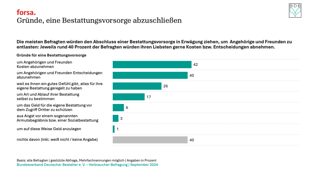 Aus welchen der folgenden Gründe haben Sie eine Bestattungsvorsorge abgeschlossen bzw. würden Sie eine Bestattungsvorsorge abschließen?