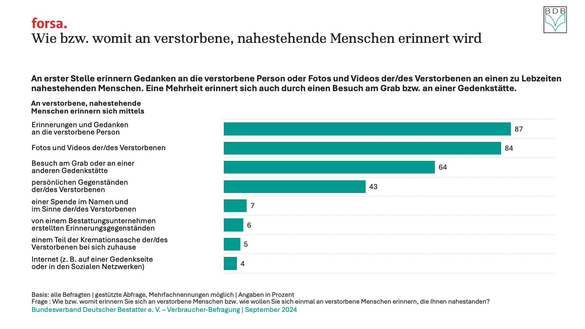 Wie bzw. womit erinnern Sie sich an verstorbene Menschen bzw. wie wollen Sie sich einmal an verstorbene Menschen erinnern, die Ihnen nahestanden?
